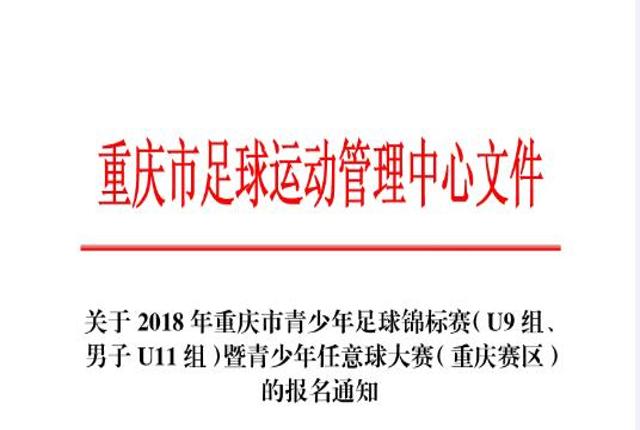 关于 2018 年重庆市青少年足球锦标赛(U9 组、男子 U11 组)暨青少年任意球大赛(重庆赛区)的报名通知